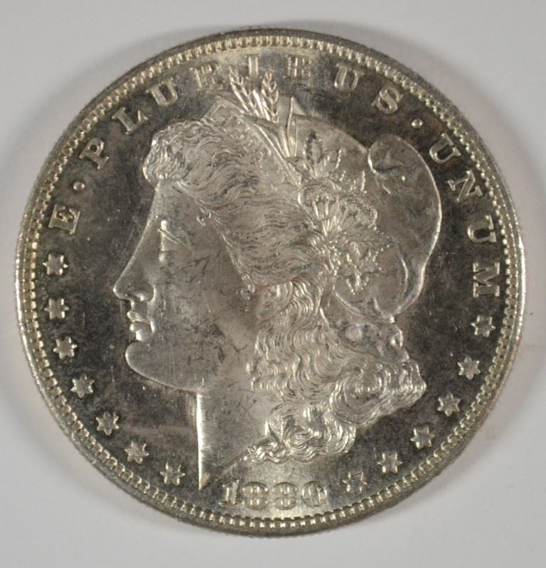 1880-S MORGAN SILVER DOLLAR, GEM BU, LOOKS PL