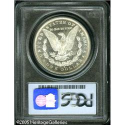 <B>1880-S<img border='0' src='http://www.heritagecoins.com/images/star.gif' width=10 height=10>$1 MS66 Deep Mirror Prooflike PCGS.</B></I> Pure-white with bold definition. You often hear the term, "bottomless depth of field," used to describe deeply mirrored coins. That phrase accurately describes this coin. The reflectivity is intense with the fields exhibiting fewer marks than one might expect of a mirrored coin. Lot:10008