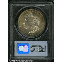 <B>1880-S<img border='0' src='http://www.heritagecoins.com/images/star.gif' width=10 height=10>$1 MS66 PCGS.</B></I> Outrageously toned with bright ivory color on the obverse, surrounded by a ring of gold and iridescent toning. The reverse has electrifying blue, green, lilac, and rose color and presents a kaleidoscope of color Lot:10000