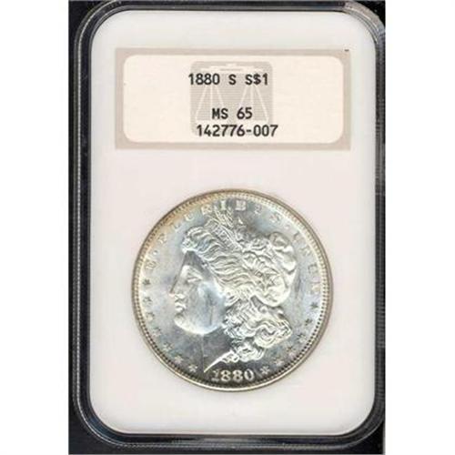 <b>1880-S Morgan Dollar. NGC graded MS65.</b> First of several gem quality Morgans from this consignment where the glowing mint frost and original luster set it apart from others of lesser quality. A sharp gem <b>(PCGS # 7118)</b>