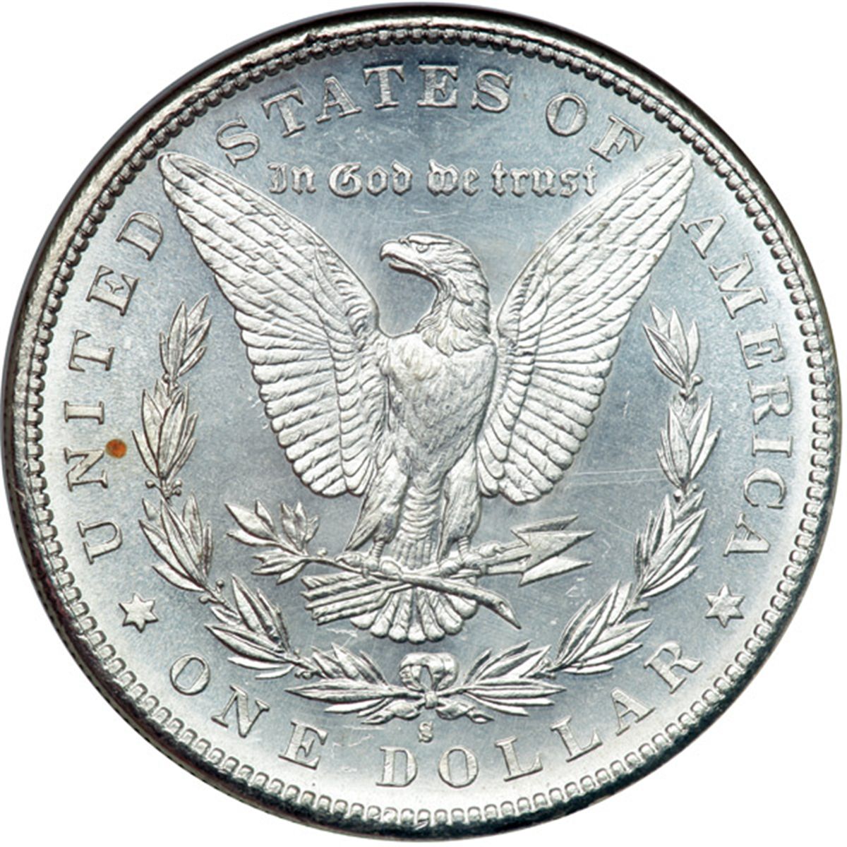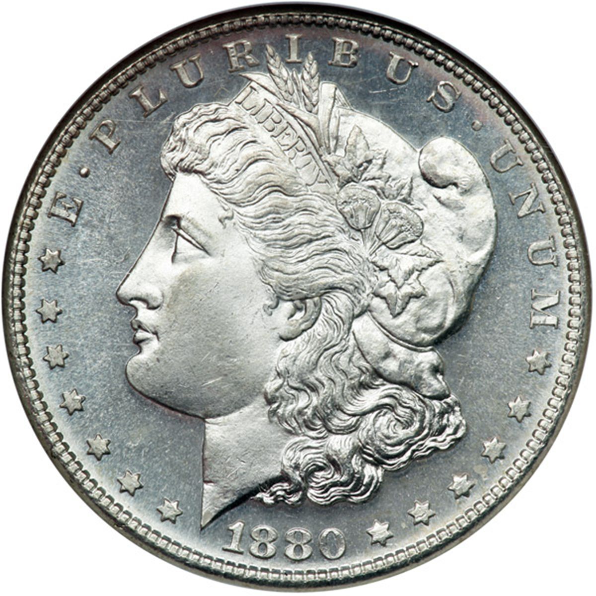 1880-S. NGC graded MS-67. Semi prooflike and blast white, the fields display lovely cartwheel effects from their near-perfection (PCGS # 7118) .