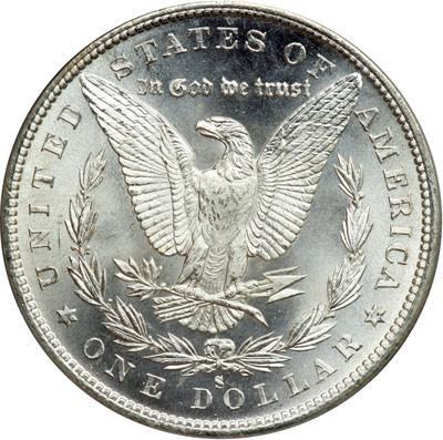 1880-S Morgan Dollar. PCGS graded MS-67. CAC Approved. A gorgeous frosty gem Morgan. Pop 1,558; 146 finer, 141 in 68, 5 in 69 (PCGS # 7118) .