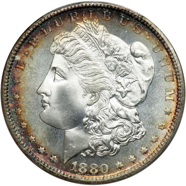 1880-S Morgan Dollar. PCGS graded MS-67 PQ. Light golden toning around the edges. Almost a perfect cheek. Only graded once in it's lifetime. "I have seen MS-68 coins not this nice," notes Larry Goldberg, who examines each and every coin personally in every consignment to our sales, drawing upon his 50+ years of experience as a numismatist (PCGS # 7118) .