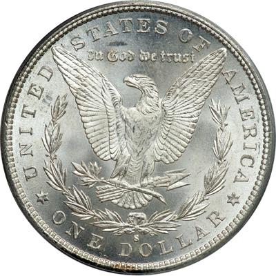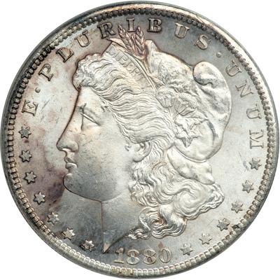 1880-S Morgan Dollar. PCGS graded MS-66. Frosty white with an area of tone just starting to form. In an old green label holder (PCGS # 7118) .
