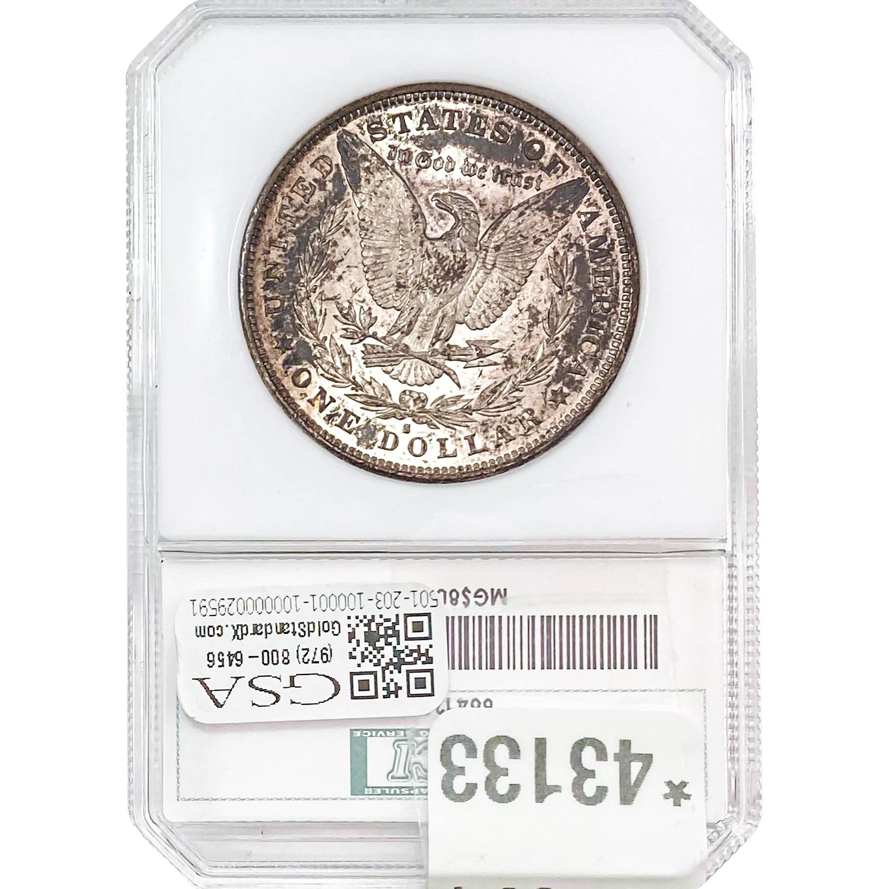 COINS AND CURRENCY LISTED IN GSA’S CATALOG AS GRADED AND ENCAPSULATED BY PCGS, NGC, ANACS, ICG, PCGS CURRENCY, PMG, PCGS BANKNOTE GRADING, CMC OR ANY OTHER THIRD-PARTY GRADING SERVICE ARE LIKEWISE SOLD “AS-IS” EXCEPT AS EXPRESSLY SET FORTH HEREIN. ALL THIRD-PARTY GRADING SERVICE GUARANTEES, INCLUDING AUTHENTICITY, ARE THE SOLE RESPONSIBILITY OF THE THIRD-PARTY GRADING SERVICE AND NOT WARRANTIES OR GUARANTEES OF GSA. BIDDERS SHOULD CONTACT THESE THIRD-PARTY GRADING SERVICES DIRECTLY WITH RESPECT TO ANY CLAIMS OR QUESTIONS THEY MAY HAVE CONCERNING THEIR GUARANTEES AND WARRANTIES. BIDDERS ACKNOWLEDGE AND AGREE THAT AUCTIONEER IS NOT BOUND BY OR LIABLE FOR ANY OPINION OR CERTIFICATION BY ANY THIRD-PARTY GRADING SERVICE. REMOVAL OF A PRODUCT FROM ITS PROTECTIVE CASING OR HOLDER OR ALTERATION OF ANY COIN HOLDER WAIVES ALL RIGHTS CONCERNING THE PRODUCT CONTAINED THEREIN.