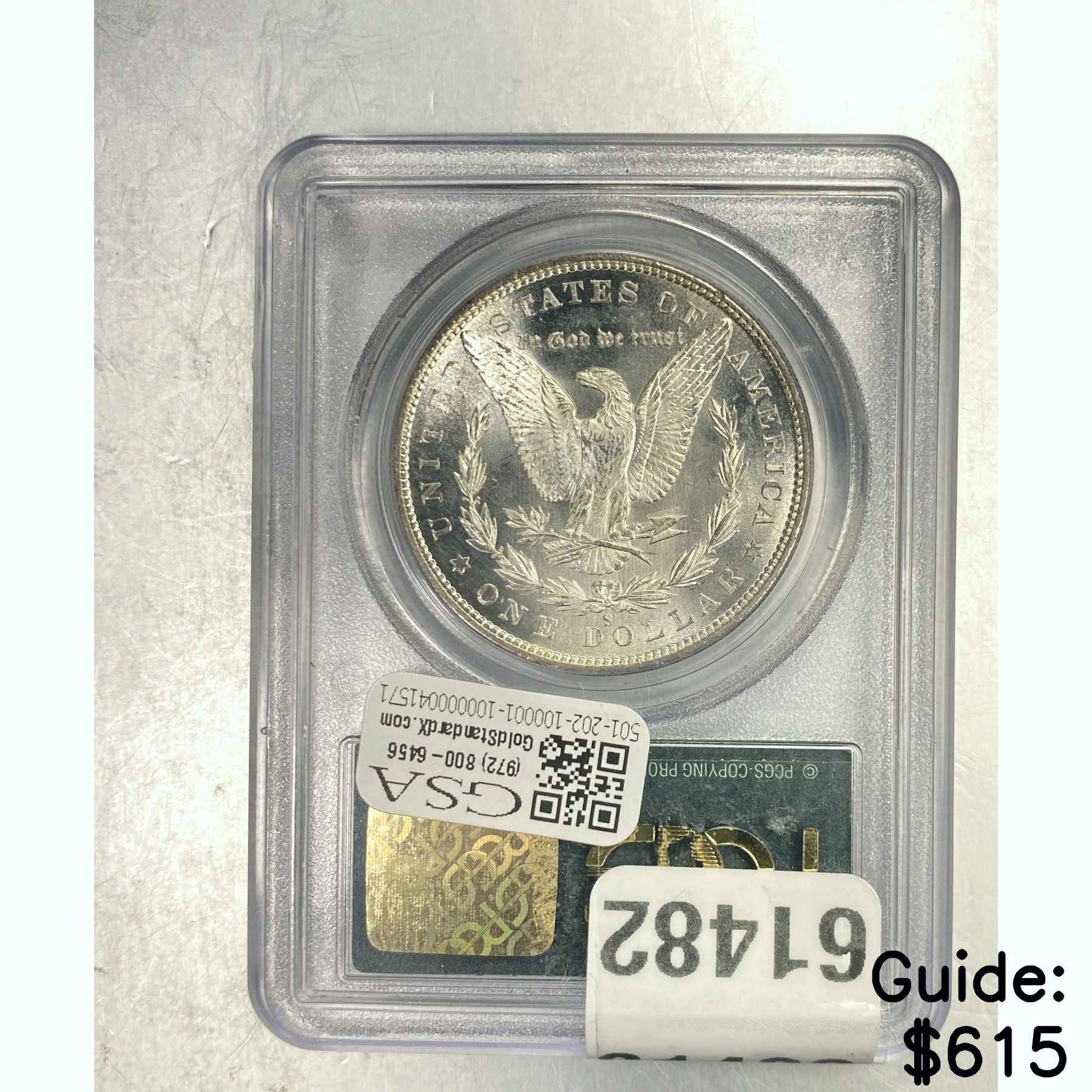 e. Coins sold referencing a third-party grading service are sold “AS IS” without any express or implied warranty, except for a guarantee by GSA that they are genuine. Removal or alteration of the holder, voids all of Bidder’s claims concerning that Product. Certain warranties may be available from the grading services and Bidders are referred to them for further details: Numismatic Guaranty Corporation (NGC), PO Box 4776, Sarasota, FL 34230, www.ngccoin.com/services/writtenguarantee.asp; Professional Coin Grading Services (PCGS), PO Box 9458, Newport Beach, CA 92658, www.pcgs.com/guarantee.html; ANACS, 6555 S. Kenton St., Ste. 303, Englewood, CO 80111; and Independent Coin Grading Co. (ICG), 7901 East Bellview, Ave., Suite 50, Englewood, CO 80111.