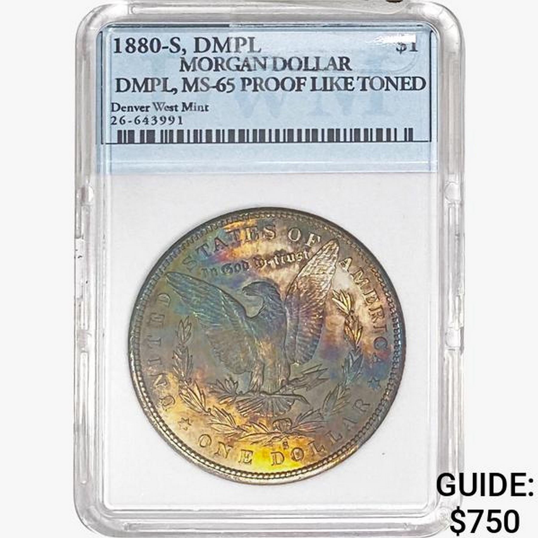 1880-S Morgan Silver Dollar DWM MS65 PROOF LIKE TONED