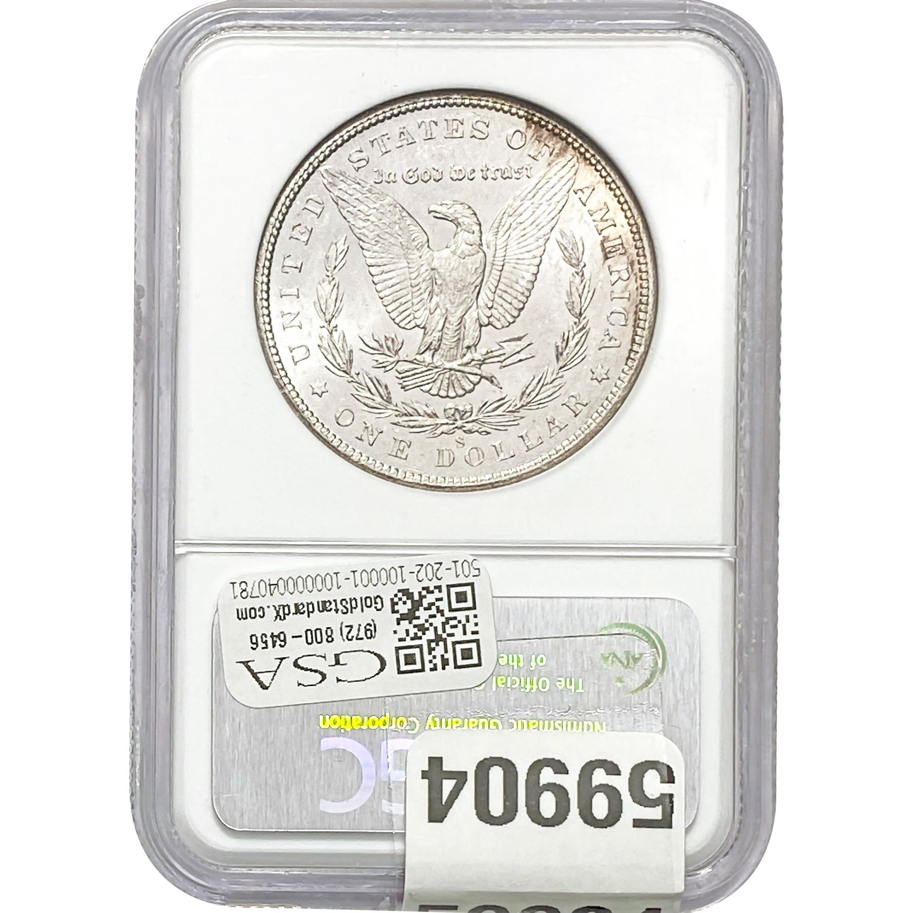 e. Coins sold referencing a third-party grading service are sold “AS IS” without any express or implied warranty, except for a guarantee by GSA that they are genuine. Removal or alteration of the holder, voids all of Bidder’s claims concerning that Product. Certain warranties may be available from the grading services and Bidders are referred to them for further details: Numismatic Guaranty Corporation (NGC), PO Box 4776, Sarasota, FL 34230, www.ngccoin.com/services/writtenguarantee.asp; Professional Coin Grading Services (PCGS), PO Box 9458, Newport Beach, CA 92658, www.pcgs.com/guarantee.html; ANACS, 6555 S. Kenton St., Ste. 303, Englewood, CO 80111; and Independent Coin Grading Co. (ICG), 7901 East Bellview, Ave., Suite 50, Englewood, CO 80111.