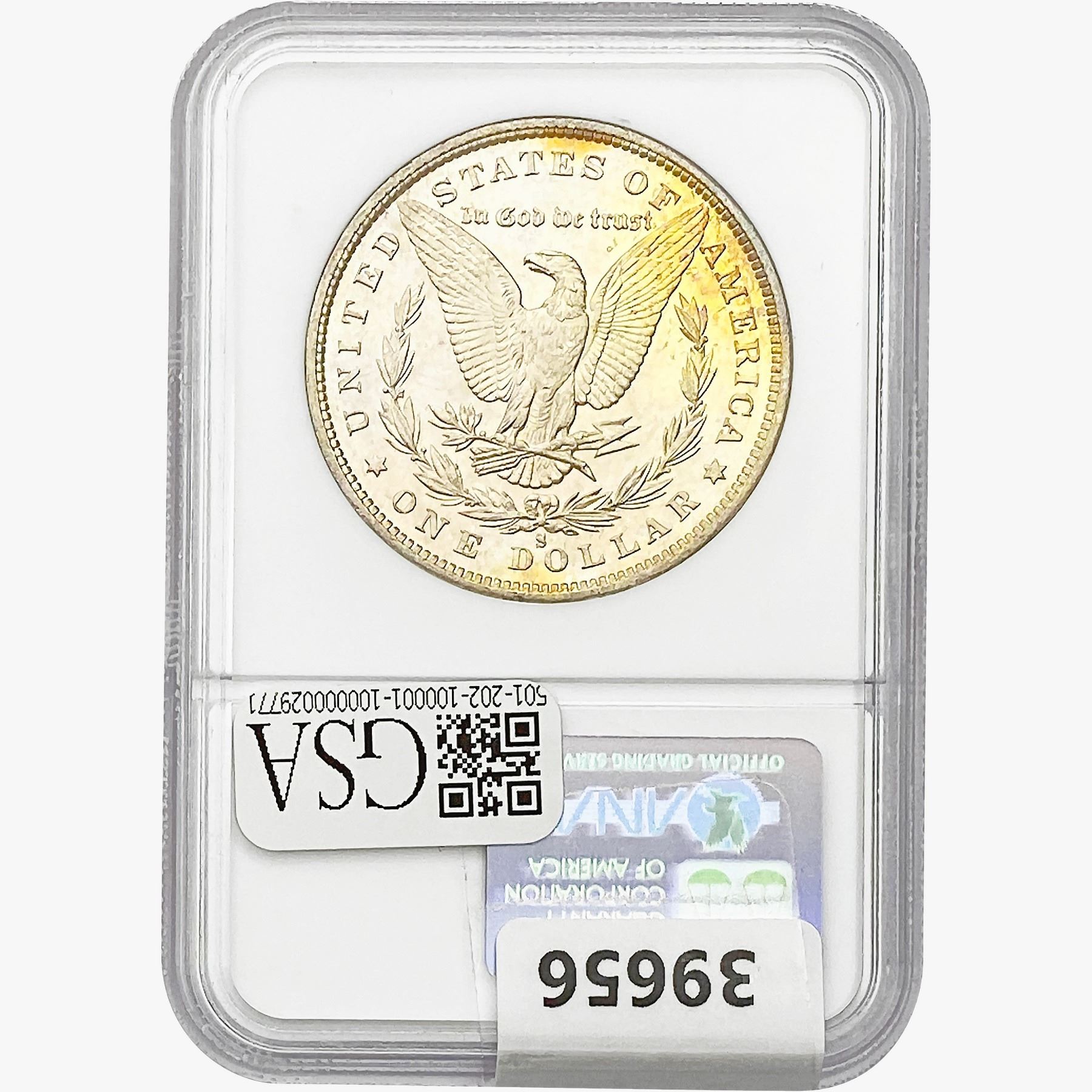 COINS AND CURRENCY LISTED IN GSA’S CATALOG AS GRADED AND ENCAPSULATED BY PCGS, NGC, ANACS, ICG, PCGS CURRENCY, PMG, PCGS BANKNOTE GRADING, CMC OR ANY OTHER THIRD-PARTY GRADING SERVICE ARE LIKEWISE SOLD “AS-IS” EXCEPT AS EXPRESSLY SET FORTH HEREIN. ALL THIRD-PARTY GRADING SERVICE GUARANTEES, INCLUDING AUTHENTICITY, ARE THE SOLE RESPONSIBILITY OF THE THIRD-PARTY GRADING SERVICE AND NOT WARRANTIES OR GUARANTEES OF GSA. BIDDERS SHOULD CONTACT THESE THIRD-PARTY GRADING SERVICES DIRECTLY WITH RESPECT TO ANY CLAIMS OR QUESTIONS THEY MAY HAVE CONCERNING THEIR GUARANTEES AND WARRANTIES. BIDDERS ACKNOWLEDGE AND AGREE THAT AUCTIONEER IS NOT BOUND BY OR LIABLE FOR ANY OPINION OR CERTIFICATION BY ANY THIRD-PARTY GRADING SERVICE. REMOVAL OF A PRODUCT FROM ITS PROTECTIVE CASING OR HOLDER OR ALTERATION OF ANY COIN HOLDER WAIVES ALL RIGHTS CONCERNING THE PRODUCT CONTAINED THEREIN.
