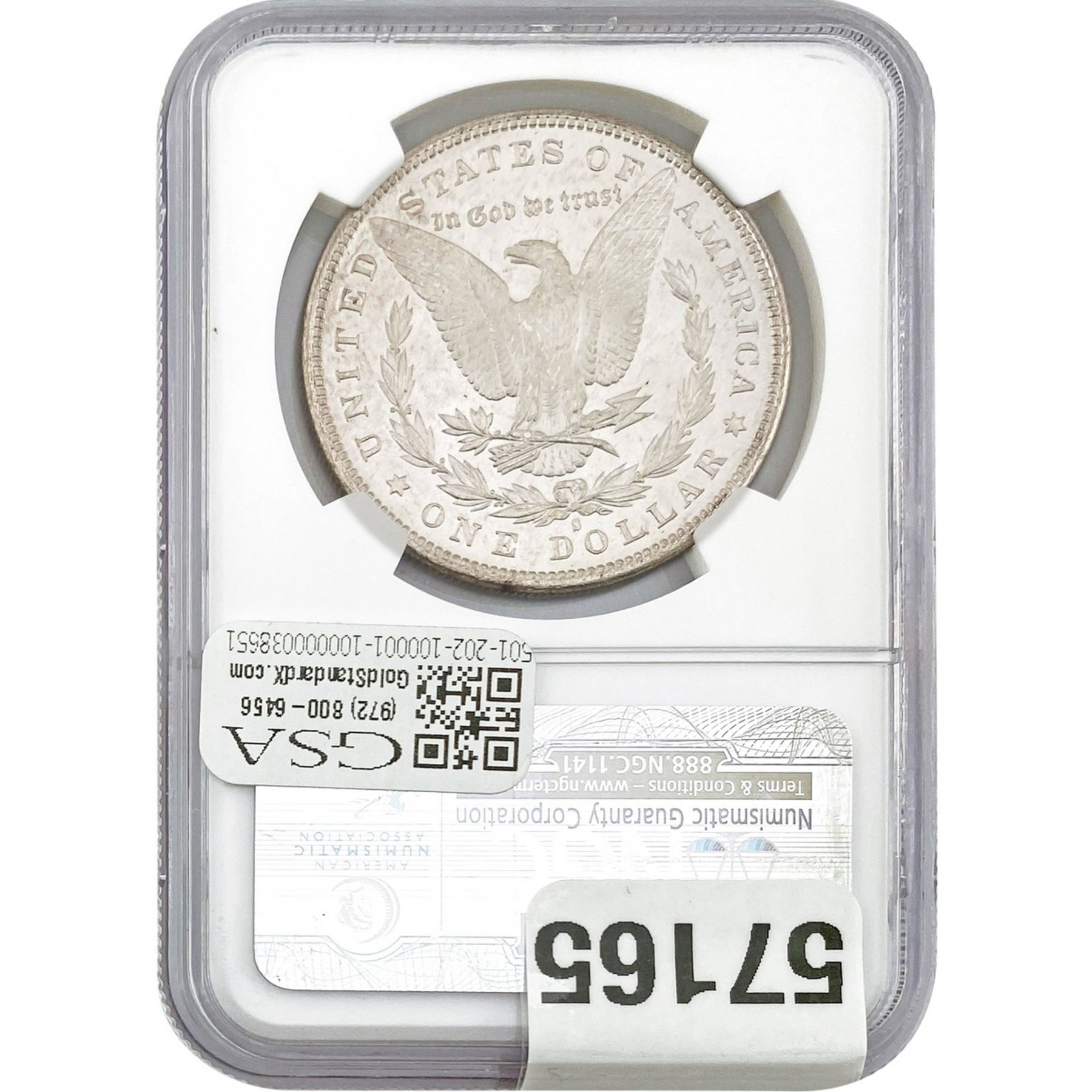 e. Coins sold referencing a third-party grading service are sold “AS IS” without any express or implied warranty, except for a guarantee by GSA that they are genuine. Removal or alteration of the holder, voids all of Bidder’s claims concerning that Product. Certain warranties may be available from the grading services and Bidders are referred to them for further details: Numismatic Guaranty Corporation (NGC), PO Box 4776, Sarasota, FL 34230, www.ngccoin.com/services/writtenguarantee.asp; Professional Coin Grading Services (PCGS), PO Box 9458, Newport Beach, CA 92658, www.pcgs.com/guarantee.html; ANACS, 6555 S. Kenton St., Ste. 303, Englewood, CO 80111; and Independent Coin Grading Co. (ICG), 7901 East Bellview, Ave., Suite 50, Englewood, CO 80111.