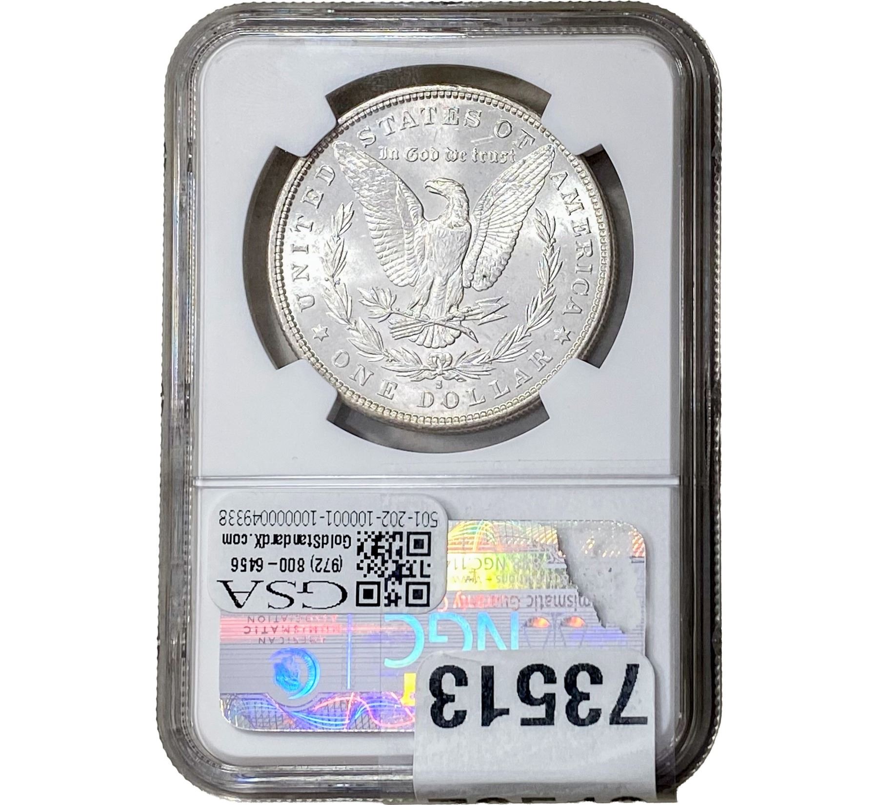 e. Coins sold referencing a third-party grading service are sold “AS IS” without any express or implied warranty, except for a guarantee by GSA that they are genuine. Removal or alteration of the holder, voids all of Bidder’s claims concerning that Product. Certain warranties may be available from the grading services and Bidders are referred to them for further details: Numismatic Guaranty Corporation (NGC), PO Box 4776, Sarasota, FL 34230, www.ngccoin.com/services/writtenguarantee.asp; Professional Coin Grading Services (PCGS), PO Box 9458, Newport Beach, CA 92658, www.pcgs.com/guarantee.html; ANACS, 6555 S. Kenton St., Ste. 303, Englewood, CO 80111; and Independent Coin Grading Co. (ICG), 7901 East Bellview, Ave., Suite 50, Englewood, CO 80111.