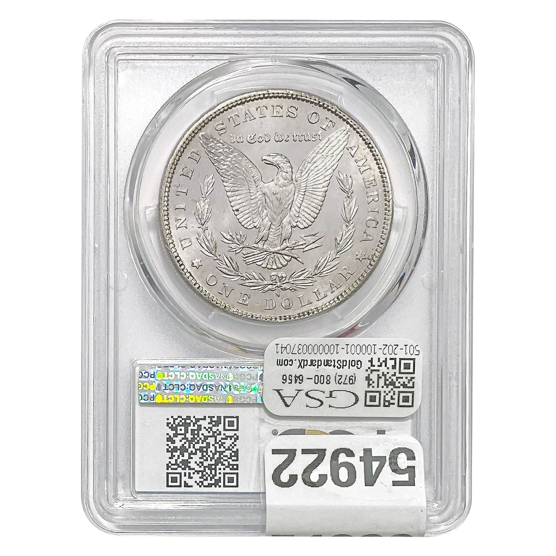 e. Coins sold referencing a third-party grading service are sold “AS IS” without any express or implied warranty, except for a guarantee by GSA that they are genuine. Removal or alteration of the holder, voids all of Bidder’s claims concerning that Product. Certain warranties may be available from the grading services and Bidders are referred to them for further details: Numismatic Guaranty Corporation (NGC), PO Box 4776, Sarasota, FL 34230, www.ngccoin.com/services/writtenguarantee.asp; Professional Coin Grading Services (PCGS), PO Box 9458, Newport Beach, CA 92658, www.pcgs.com/guarantee.html; ANACS, 6555 S. Kenton St., Ste. 303, Englewood, CO 80111; and Independent Coin Grading Co. (ICG), 7901 East Bellview, Ave., Suite 50, Englewood, CO 80111.