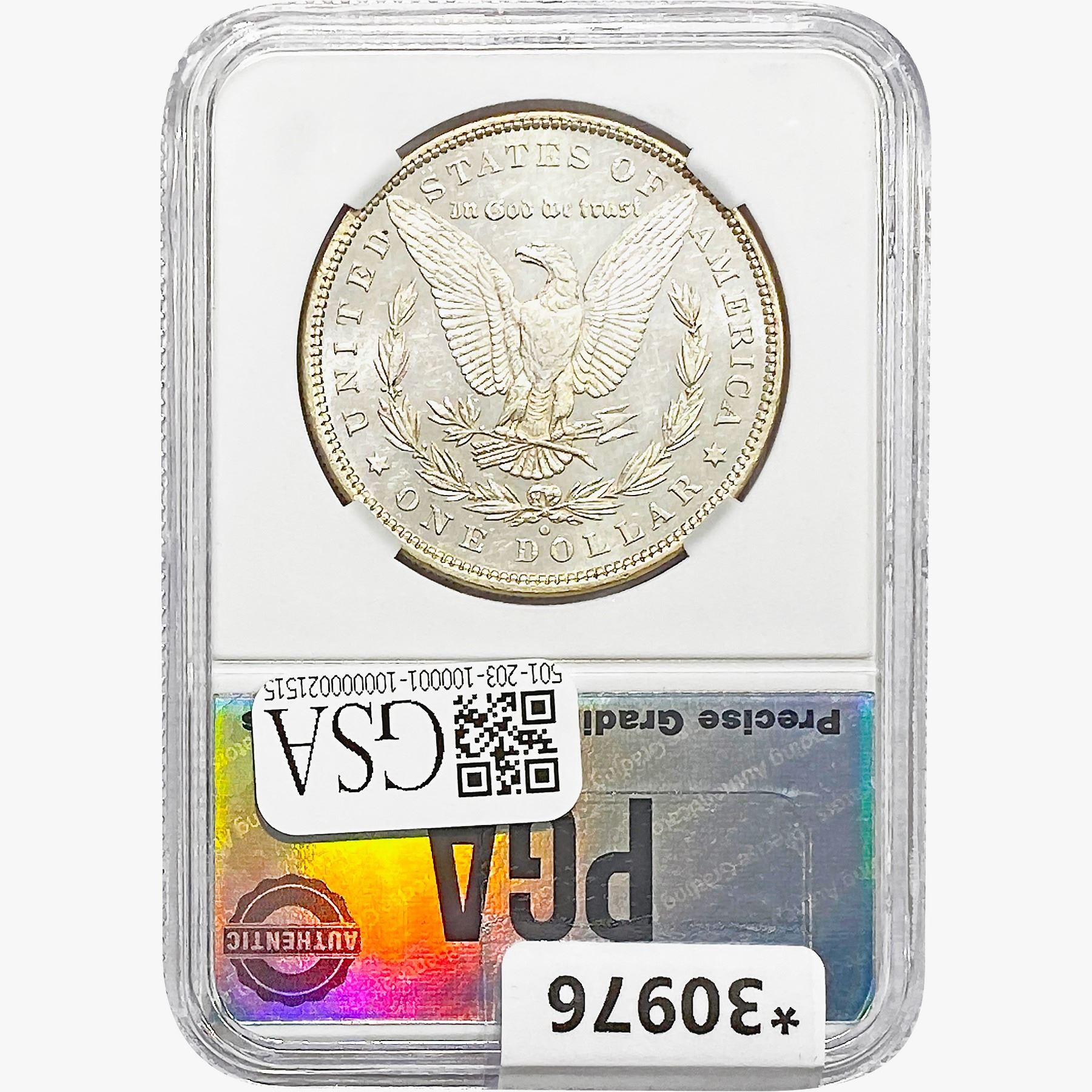 COINS AND CURRENCY LISTED IN GSA’S CATALOG AS GRADED AND ENCAPSULATED BY PCGS, NGC, ANACS, ICG, PCGS CURRENCY, PMG, PCGS BANKNOTE GRADING, CMC OR ANY OTHER THIRD-PARTY GRADING SERVICE ARE LIKEWISE SOLD “AS-IS” EXCEPT AS EXPRESSLY SET FORTH HEREIN. ALL THIRD-PARTY GRADING SERVICE GUARANTEES, INCLUDING AUTHENTICITY, ARE THE SOLE RESPONSIBILITY OF THE THIRD-PARTY GRADING SERVICE AND NOT WARRANTIES OR GUARANTEES OF GSA. BIDDERS SHOULD CONTACT THESE THIRD-PARTY GRADING SERVICES DIRECTLY WITH RESPECT TO ANY CLAIMS OR QUESTIONS THEY MAY HAVE CONCERNING THEIR GUARANTEES AND WARRANTIES. BIDDERS ACKNOWLEDGE AND AGREE THAT AUCTIONEER IS NOT BOUND BY OR LIABLE FOR ANY OPINION OR CERTIFICATION BY ANY THIRD-PARTY GRADING SERVICE. REMOVAL OF A PRODUCT FROM ITS PROTECTIVE CASING OR HOLDER OR ALTERATION OF ANY COIN HOLDER WAIVES ALL RIGHTS CONCERNING THE PRODUCT CONTAINED THEREIN.