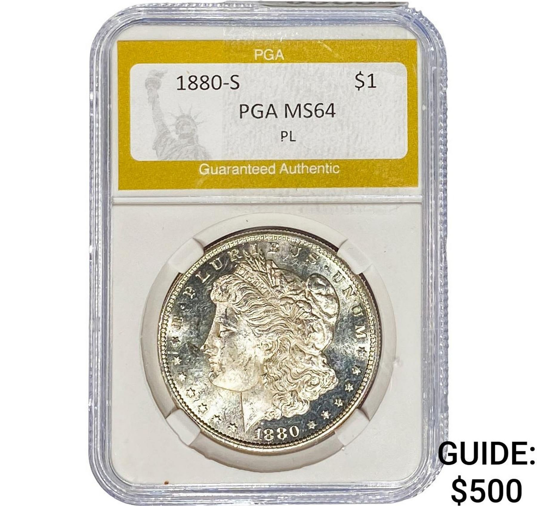 1880-S Morgan Silver Dollar PGA MS64 PL