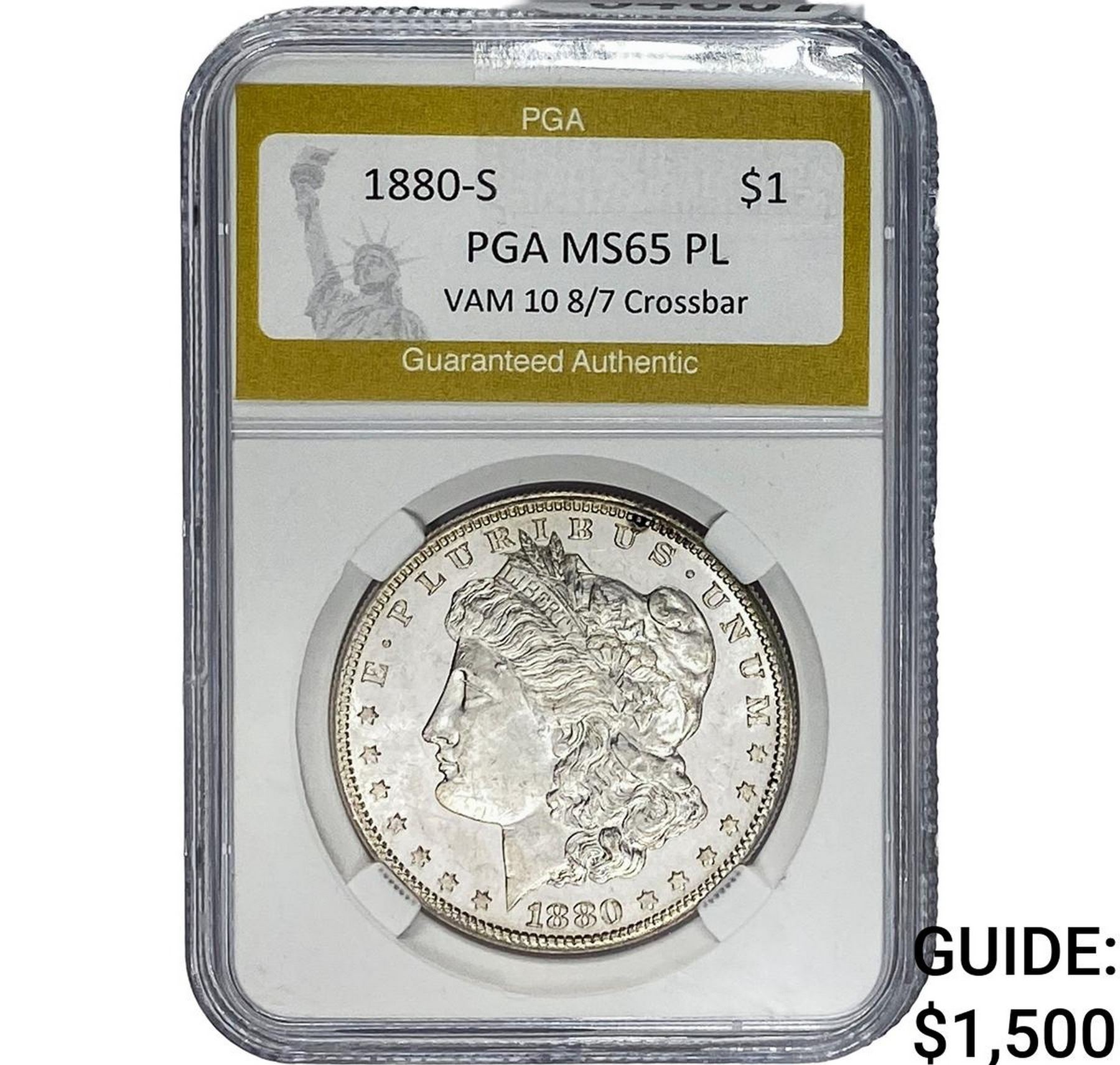 1880-S Morgan Silver Dollar PGA MS65 PL VAM 10 8/7 Crossbar