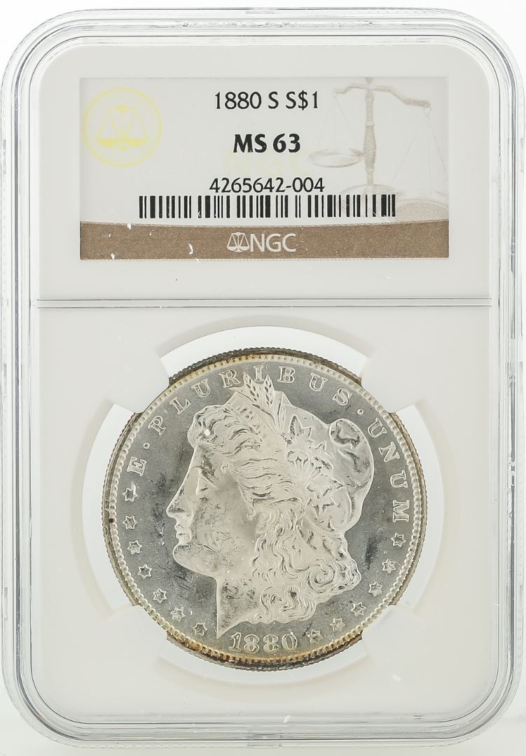 One 1880-S NGC MS63 Morgan Silver Dollar. NGC Certified.