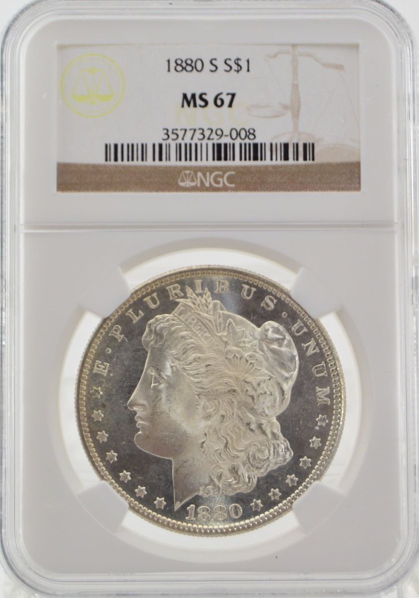 1880 "S" NGC MS67 United States Morgan Dollar with a nice Proof Like Obverse