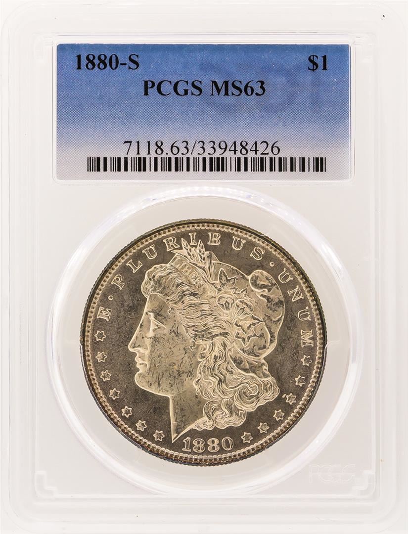 One 1880-S PCGS MS63 Morgan Silver Dollar. PCGS Certified.