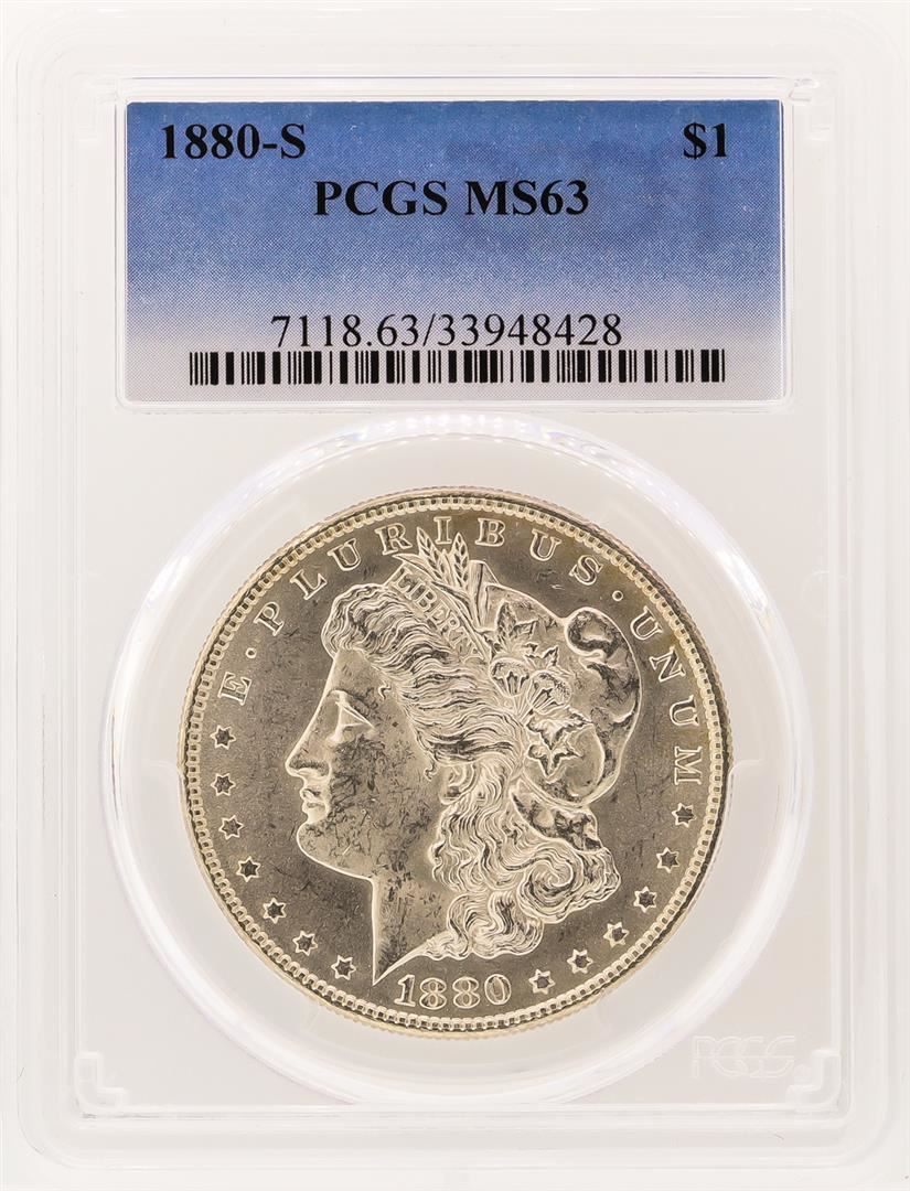 One 1880-S PCGS MS63 Morgan Silver Dollar. PCGS Certified.