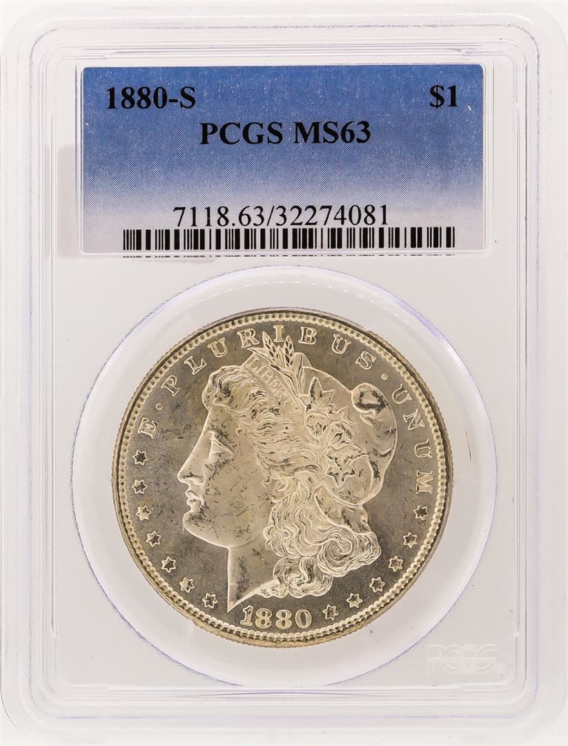 One 1880-S PCGS MS63 Morgan Silver Dollar. PCGS Certified.