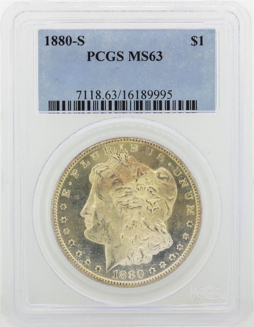One 1880-S PCGS MS63 Morgan Silver Dollar. PCGS Certified.