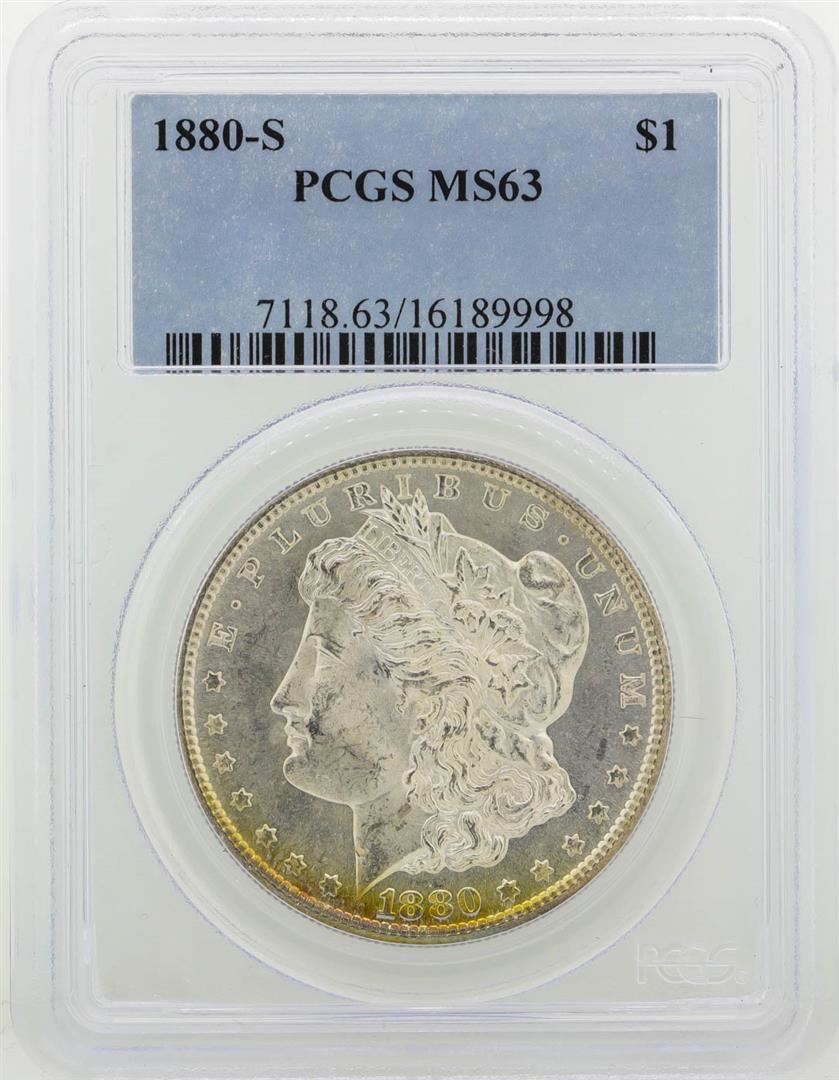 One 1880-S PCGS MS63 Morgan Silver Dollar. PCGS Certified.