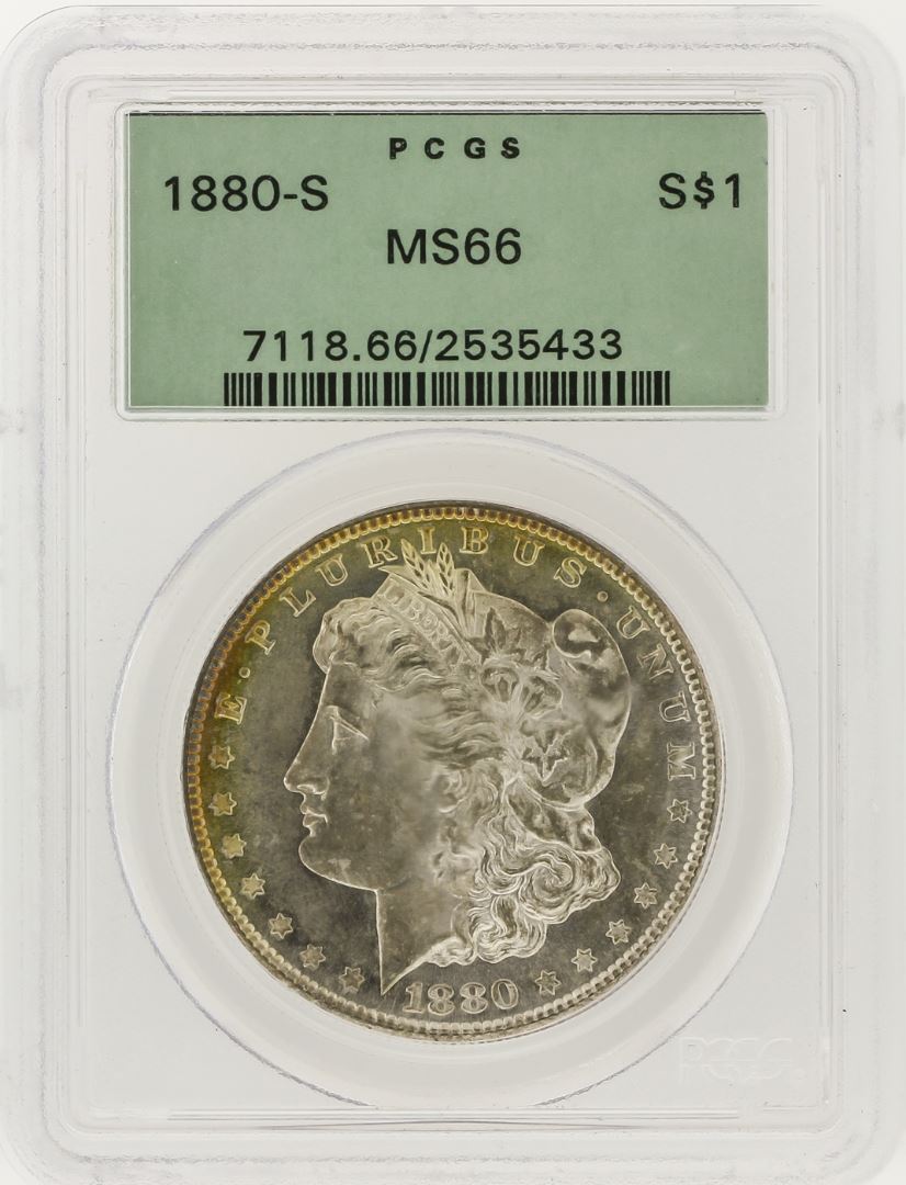 One 1880-S PCGS MS66 Morgan Silver Dollar. PCGS Certified.