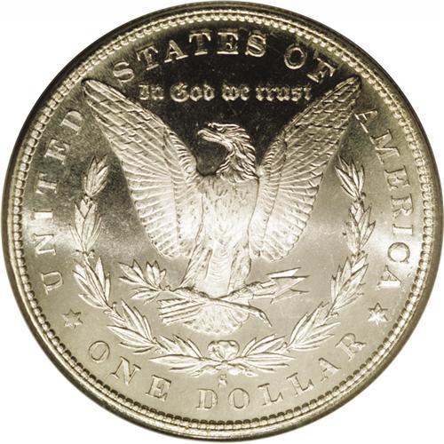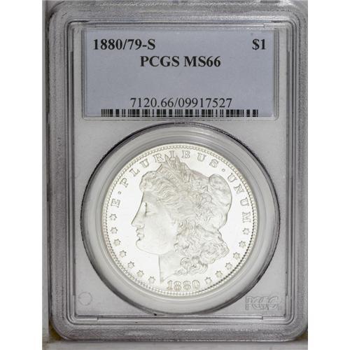 <B>1880-S<img border='0' src='http://www.heritagecoins.com/images/star.gif' width=10 height=10>$1> 8 Over 7 MS66 PCGS.</B></I> VAM-9, Large S mintmark. A brilliant Premium Gem with fairly prooflike fields and frosty devices, although apparently not deep enough for PCGS. Completely untoned, and revealing virtually no distractions even under a loupe. Population: 48 in 66, 10 finer (3/06). <BR><BR><B>Important notice:</B> Heritage usually auctions material at the rate of 200-250 lots per hour. On some occasions eBay Live bid software or the Internet may not be able to keep up with the pace of the auction. We recommend placing a realistic absentee bid now as insurance to avoid disappointment. Occasionally the auctioneer may eliminate or reject an eBay Live bid, and the auctioneer may also reopen a lot after the close of the eBay live bidding (usually because we missed an audience bid), and may reject your bid even if it shows you as the winning bidder. By bidding via eBay Live, you agree that Heritage may award the lot to another bidder at its sole discretion under the circumstances described above or any other reasonable circumstances. Since eBay bids are not shown to us until we open the lot on the floor, we treat those bids just like floor bids. In most cases the floor responds before the eBay bid is presented to us, due to Internet lag time, so for consistency we have made it a policy that floor bids are always considered first over tie eBay live bids. Also please note that all Heritage lots purchased through eBay Live carry a 20% Buyer's Premium. Please make sure you read the Terms and Conditions before you bid. This lot is being auctioned in conjunction with a live floor auction by Heritage Galleries & Auctioneers. All final auction and invoice information will be supplied by Heritage Galleries & Auctioneers, and all other information should be considered preliminary. Lot:3300 <BR><BR><B>Winning Notification and Billing:</B> After the FINAL session in this auction is complete, Heritage will send e-mail and snail mail invoices. This process normally takes several days. All final auction and invoice information will be supplied by Heritage Galleries & Auctioneers, and all other information should be considered preliminary. <BR><BR>This auction will be conducted on a live auction floor and over the Internet through eBay Live. If you choose to place an absentee bid, please take a moment to <font color='#0000ff'><u><a href='http://pages.ebay.com/liveauctions/help/before/laabsentee.html'>learn how eBay Live absentee bidding works</a></u></font><font color='#000000'>
