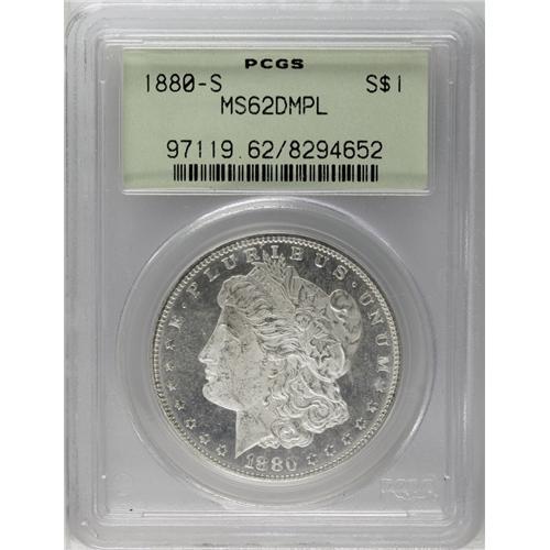 1880-S S$1 MS 62 Deep Mirror Prooflike PCGS. Heavily f
