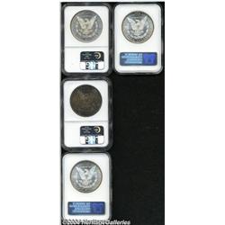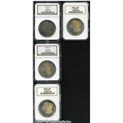<B>1880-S<S$1> MS64 NGC,</B></I> ruby-red, orange, gold, and aquamarine colors enrich the obverse; <B>1880-S MS64 NGC,</B></I> both sides have impressive patina, the reverse consumed with tobacco-brown patina while the obverse features orange, lilac, olive, and steel-blue colors; <B>1880-S MS64 NGC,</B></I> electric-blue, peach, and rose patina creates a beautiful obverse; and an <B>1880-S MS64 NGC,</B></I> rose, sky-blue, and lemon colors enliven the obverse. 4 coins <BR><BR><B>Important notice:</B> Heritage usually auctions material at the rate of 200-250 lots per hour. On some occasions eBay Live bid software or the Internet may not be able to keep up with the pace of the auction. We recommend placing a realistic absentee bid now as insurance to avoid disappointment. Occasionally the auctioneer may eliminate or reject an eBay Live bid, and the auctioneer may also reopen a lot after the close of the eBay live bidding (usually because we missed an audience bid), and may reject your bid even if it shows you as the winning bidder. By bidding via eBay Live, you agree that Heritage may award the lot to another bidder at its sole discretion under the circumstances described above or any other reasonable circumstances. Since eBay bids are not shown to us until we open the lot on the floor, we treat those bids just like floor bids. In most cases the floor responds before the eBay bid is presented to us, due to Internet lag time, so for consistency we have made it a policy that floor bids are always considered first over tie eBay live bids. Also please note that all Heritage lots purchased through eBay Live carry a 20% Buyer's Premium. Please make sure you read the Terms and Conditions before you bid.