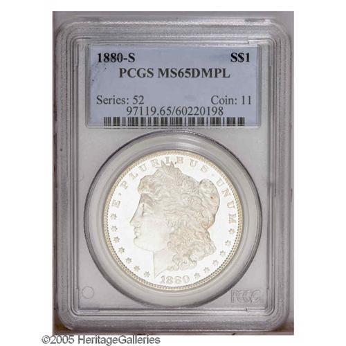 1880-S S$1 MS65 Deep Mirror Prooflike PCGS. Small S. A 1880-S[S$1] MS65 Deep Mirror Prooflike PCGS.
