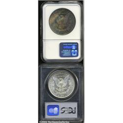 <B>1880-S<S$1> MS65 NGC,</B></I> large S mintmark, iridescent peach, rose, sea-green, and sky-blue colors decorate the reverse; and an <B>1896 MS65 PCGS,</B></I> VAM-1A, brilliant, highly lustrous, a splendidly preserved Gem, a scarce variety with a 'bar' inside the 6 in the date. 2 Coins <BR><BR><B>Important notice:</B> Heritage usually auctions material at the rate of 200-250 lots per hour. On some occasions eBay Live bid software or the Internet may not be able to keep up with the pace of the auction. We recommend placing a realistic absentee bid now as insurance to avoid disappointment. Occasionally the auctioneer may eliminate or reject an eBay Live bid, and the auctioneer may also reopen a lot after the close of the eBay live bidding (usually because we missed an audience bid), and may reject your bid even if it shows you as the winning bidder. By bidding via eBay Live, you agree that Heritage may award the lot to another bidder at its sole discretion under the circumstances described above or any other reasonable circumstances. Since eBay bids are not shown to us until we open the lot on the floor, we treat those bids just like floor bids. In most cases the floor responds before the eBay bid is presented to us, due to Internet lag time, so for consistency we have made it a policy that floor bids are always considered first over tie eBay live bids. Also please note that all Heritage lots purchased through eBay Live carry a 20% Buyer's Premium. Please make sure you read the Terms and Conditions before you bid. </span></font></tr></table></td></tr></table>