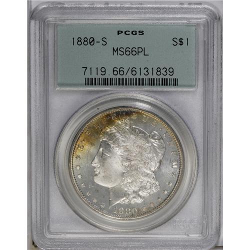 1880-S S$1 MS66 Prooflike PCGS. A sliver of gold, lila