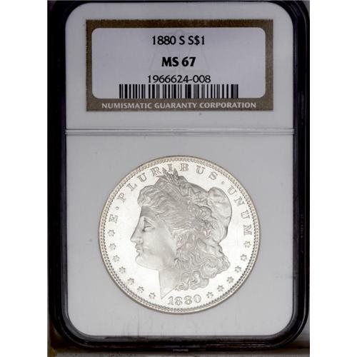 1880-S S$1 MS67 NGC. Flashy and untoned, this Superb G