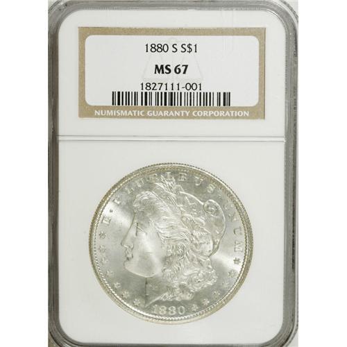1880-S S$1 MS67 NGC. Glowing luster issues from immacu