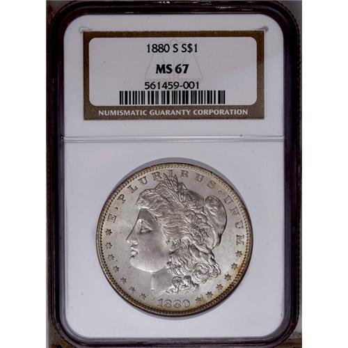 1880-S S$1 MS67 NGC. Large S. Beautiful orange, ruby-r 1880-S[img border='0' src='http://www.heritag