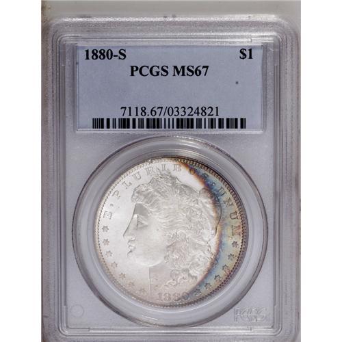 1880-S S$1 MS67 PCGS. Medium S. Beautiful ocean-blue,
