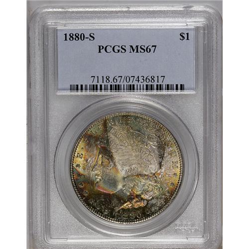 1880-S S$1 MS67 PCGS. Medium S. Orange, ruby-red, sea-