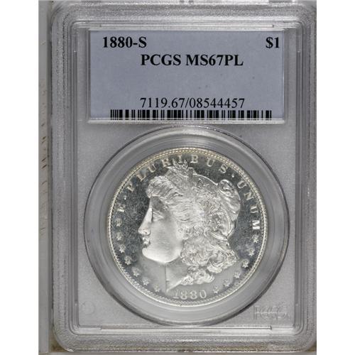 1880-S S$1 MS67 Prooflike PCGS. Large S. Prominent fro