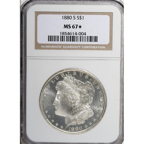 1880-S S$1 MS67 S NGC. Not just any Superb Gem, this