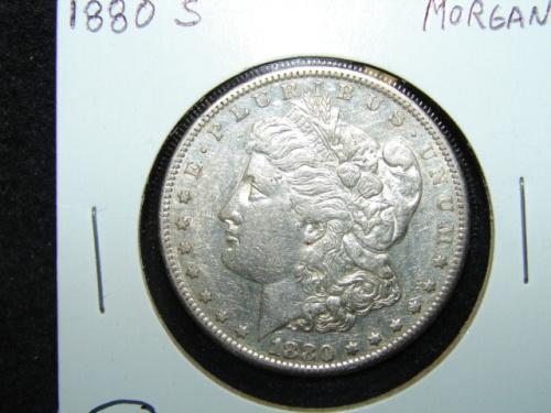 1880-S U.S. MORGAN SILVER DOLLAR. AU.