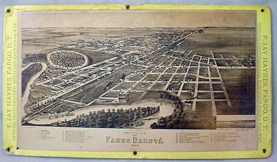 1880 STEREOVIEW CARD BIRDS EYE VIEW FARGO DAKOTA TERRITORY - F JAY HAYNES - Official Photographer for Northern Pacific Railway