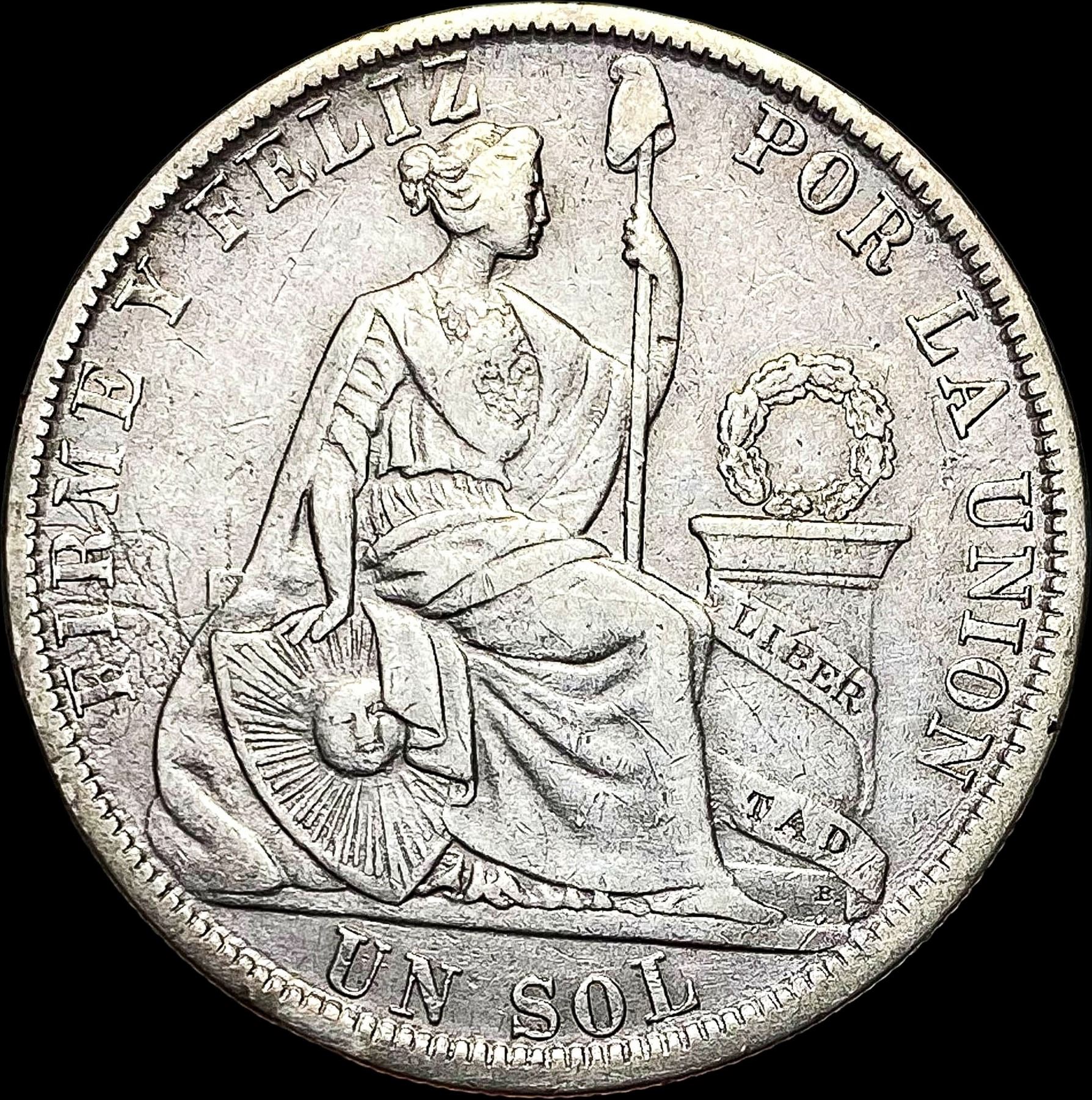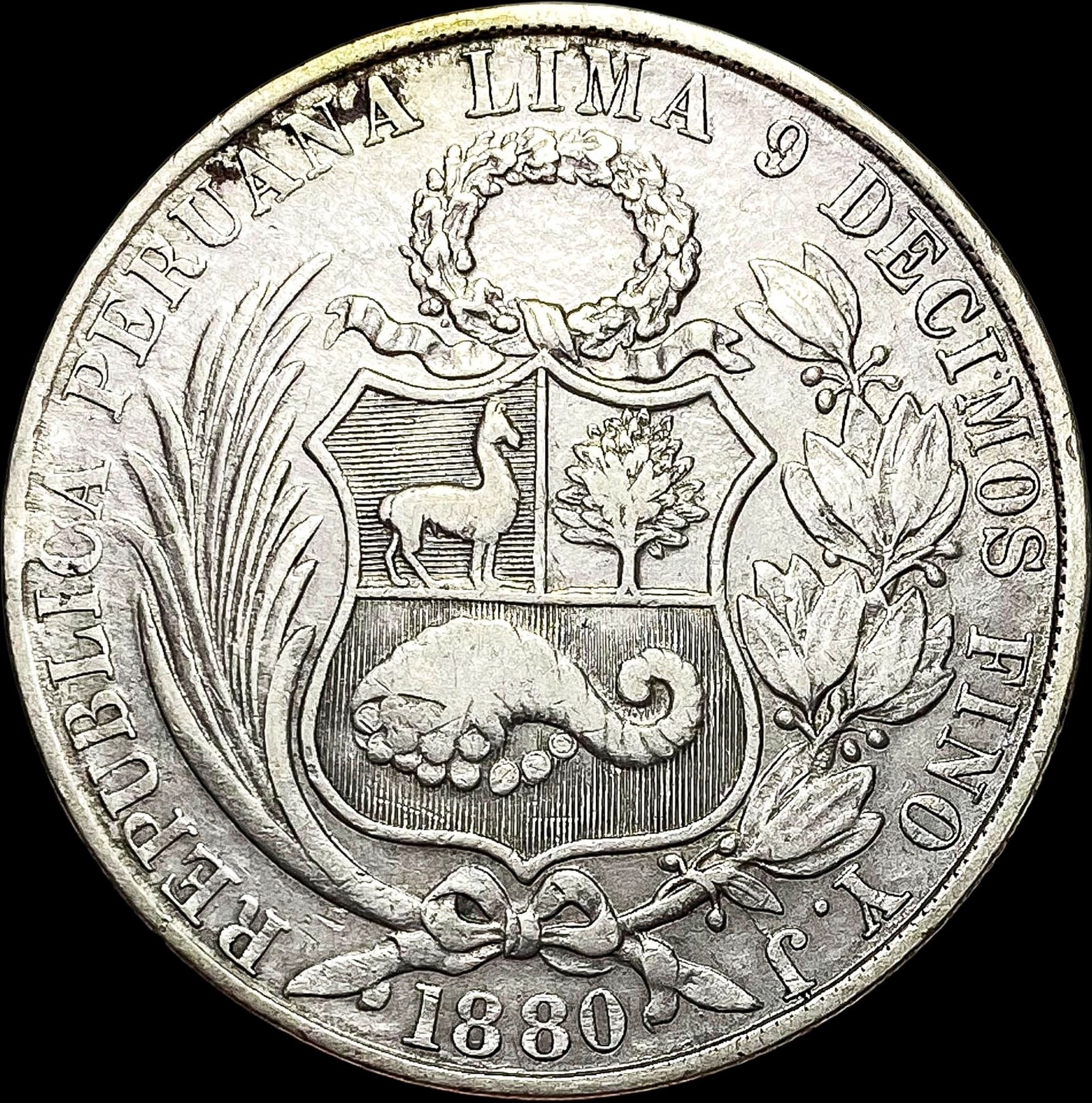 1880 Silver Un Sol Peru NEARLY UNCIRCULATED