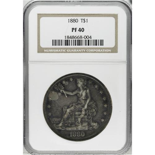 1880 T$1 PR40 NGC. A lightly circulated and heavily to