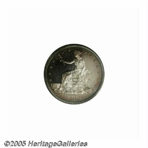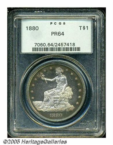 1880 T$1 PR64 PCGS. Beautiful orange, rose, and b
