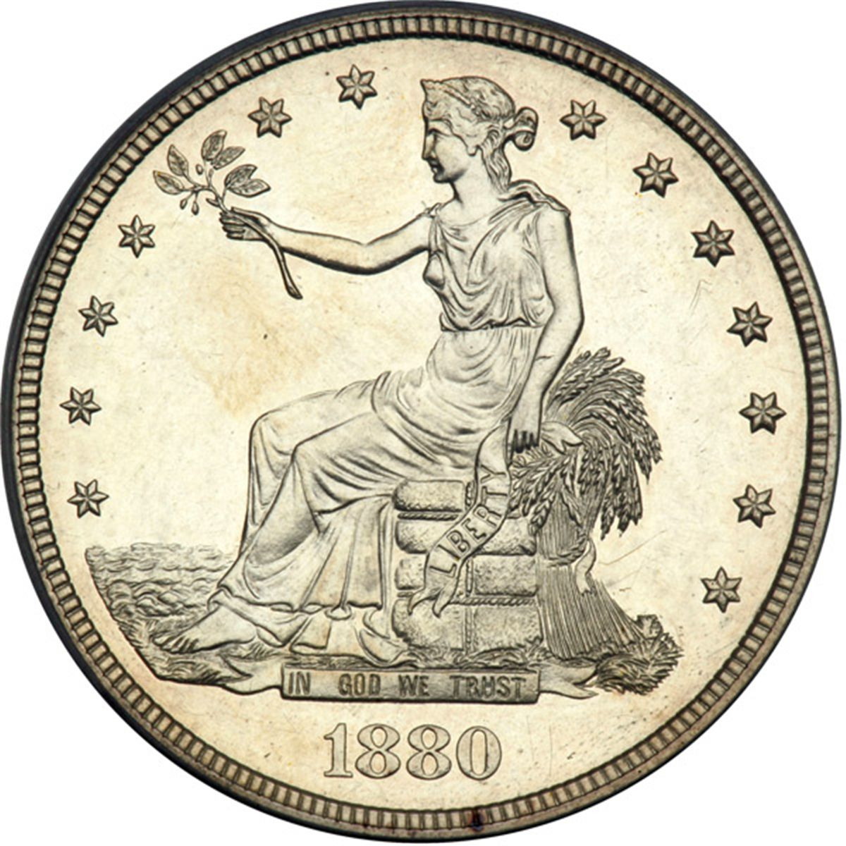 1880 Trade Dollar. PCGS graded Proof 61. A brilliant white example. Popular proof-only issue. All stars are razor-sharp on this strike, as are other details. Only 960 made (PCGS # 7060) .