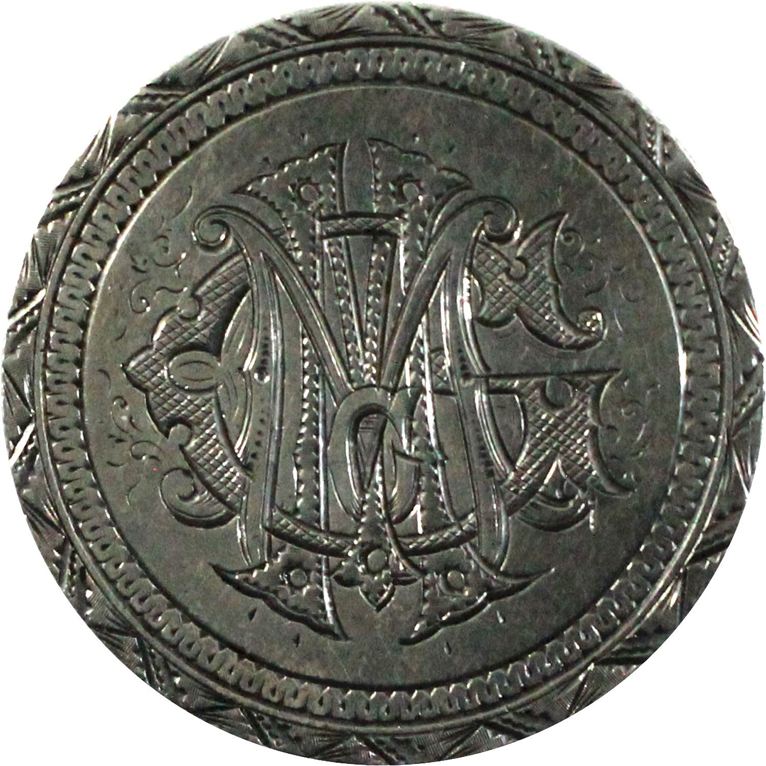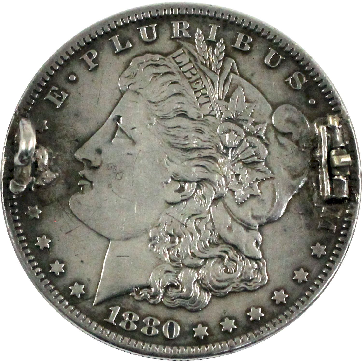 1880 United State Silver Morgan Dollar 'Love Token'. A beautifully etched reverse featuring what appears to be the letters "CMM" Coin has exception craftsmanship. Pin on Obverse is missing.