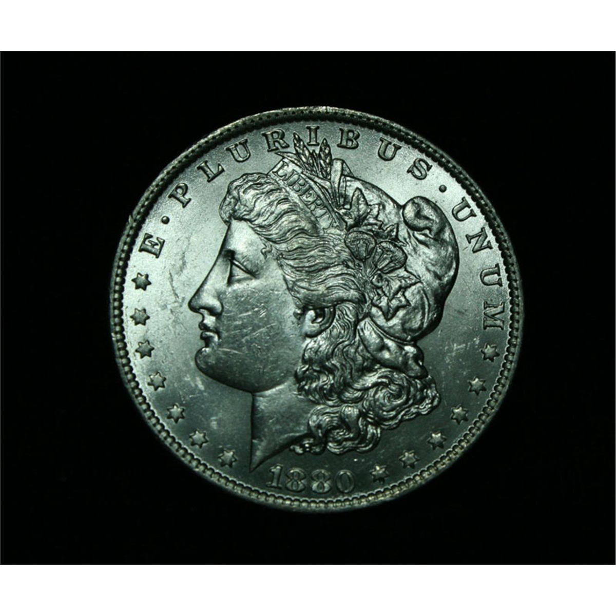 A Blast White example with Great Luster. It is also the VAM 15A with the Doubled Date and Squiggly die line on eagles tail. PCGS's Price Guide lists an ms63 at $385 and NGC's Price Guide lists an ms63 at $406. The Wholesale Greysheet lists an ms63 at $360. Estimated Value $375.