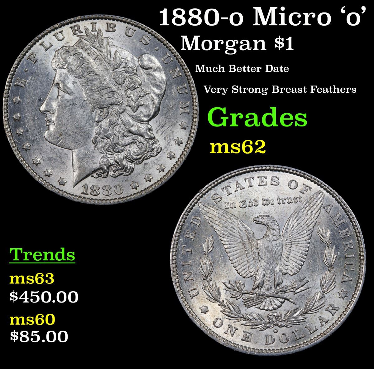 1880-o Micro 'o' Morgan Dollar $1 Grades Select Unc.