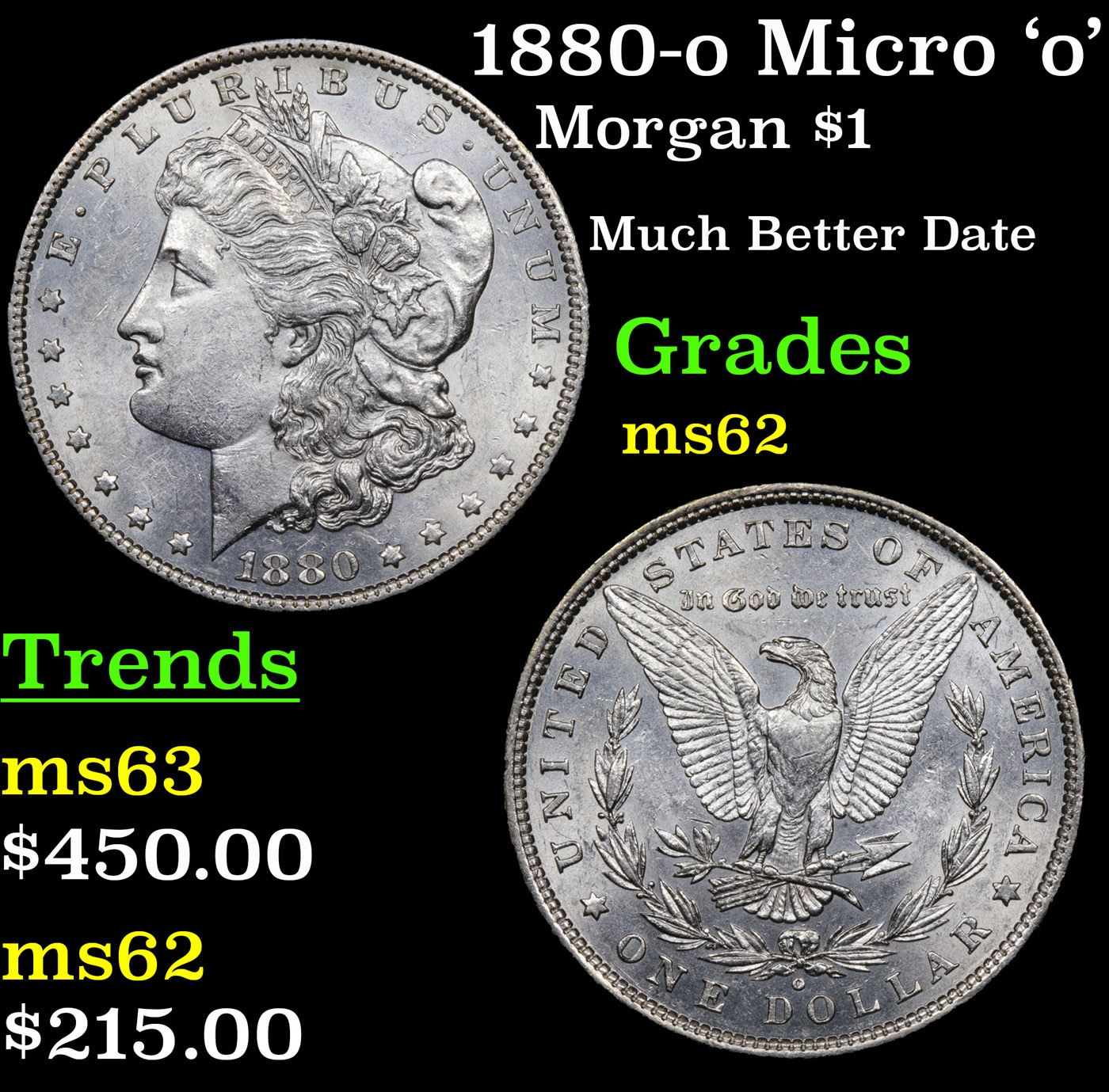 1880-o Micro 'o' Morgan Dollar $1 Grades Select Unc.